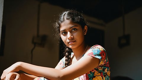 നിമിഷങ്ങൾ കഴിഞ്ഞപ്പോൾ ഹാഫ് പാവാടയും നീലയിൽ വെളുത്ത പുള്ളികളുള്ള ബ്ലൗസും ധരിച്ച് പാതിമയങ്ങിയ മിഴികളുമായി ഒരുപെൺകുട്ടിവന്ന് വാതിൽതുറന്നു.